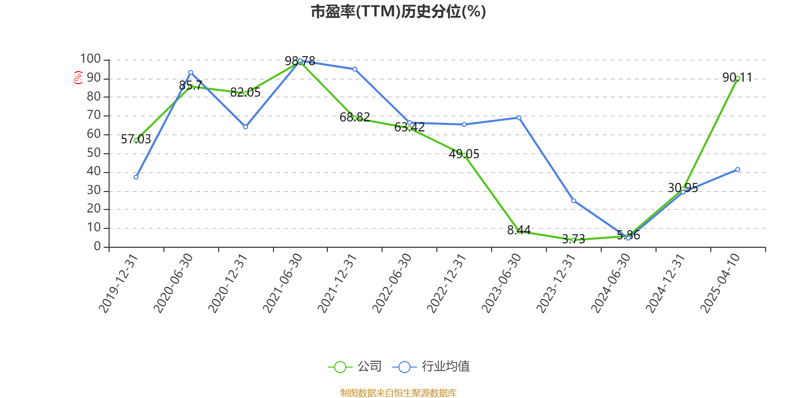 市盈率、市净率为负时,不显示当期分位数,会导致折线图中断。